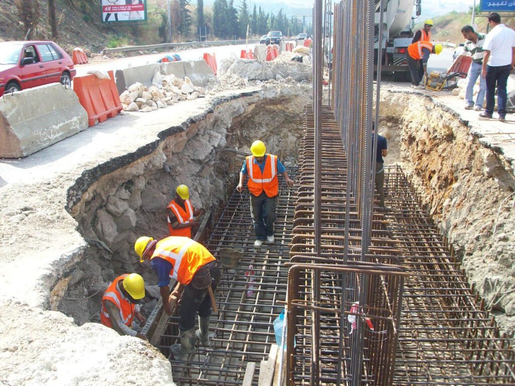 Construction of Damour bridge foundations
