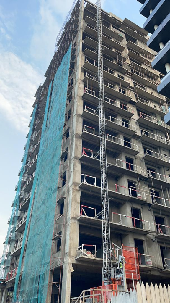 Construction of a 12 story building in Douala, Cameroon, including underground facilities, private villa at the top and a rooftop garden.